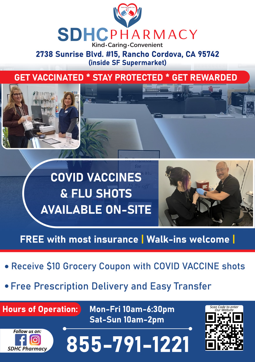 SDHC Pharmacy is a full service pharmacy committed to providing affordable and convenient healthcare solutions for patients, particularly those who may be uninsured or reside in areas with limited access to a pharmacy or health care options. Our location at the SF Supermarket Mall in Rancho Cordova enables patients to connect with medical professionals, fill prescriptions on-site and access essential healthcare services—all in one secure and welcoming environment.